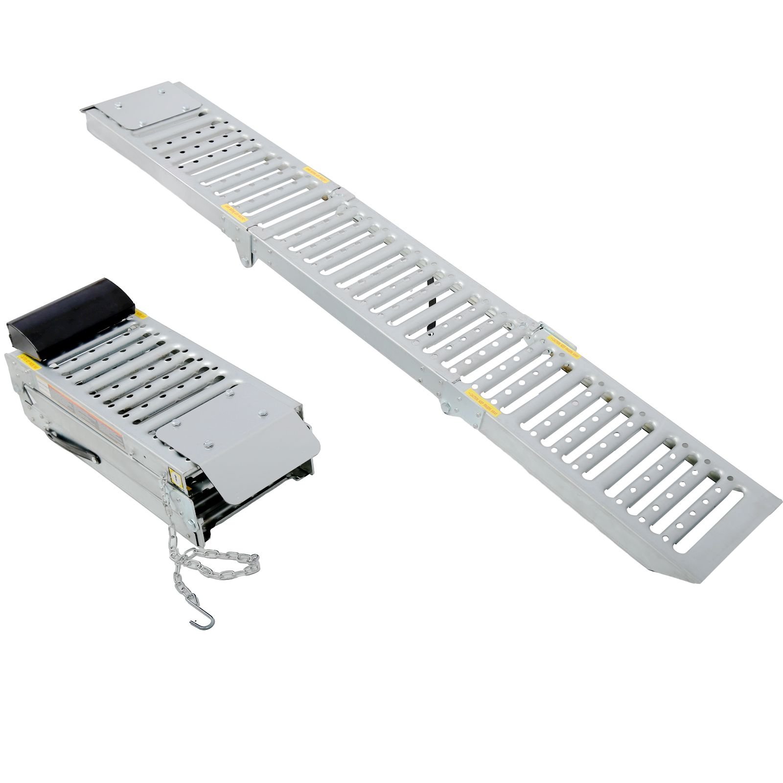 Convenient Size and Folding Design: The total length of each ramp is 67.3 inches, with a width of 10 inches. However, what sets them apart is their smart folding structure. When folded, the ramps shrink to a compact size of 22.8x10.6x6.1inches This space-saving feature allows for easy storage and shipping, making these ramps a practical choice for both personal and professional use.